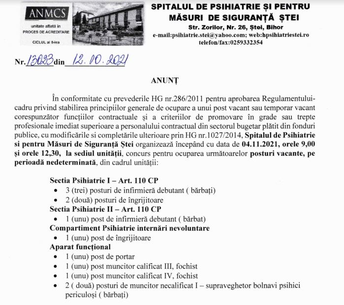 Administrator Ultimele articole 12 Octombrie 2021 Accesări: 3227 Anunt concurs_12.10.2021 Tipărire Email Evaluare utilizator: 0 / 5 Vă rugăm să evaluați Vot 1 Vot 2 Vot 3 Vot 4 Vot 5 Descarca Anunt_concurs TEMATICA_SI_BIBLIOGRAFIA FISELE_POSTURILOR Prec Următor