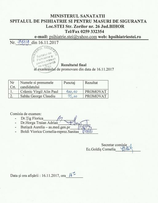 Administrator Ultimele articole 17 Noiembrie 2017 Accesări: 7246 Anunt Promovare 16.11.2017 Tipărire Email Evaluare utilizator: 5 / 5 Vă rugăm să evaluați Vot 1 Vot 2 Vot 3 Vot 4 Vot 5 Anunt final - Promovare la concursul din data de 16.11.2017. Prec Următor